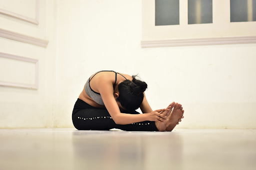 Step three is to find quiet in Paschimottanasana (Seated Forward Bend). By folding forward, you create a personal space shielded from overstimulation. This posture encourages you to stop analyzing and start feeling. The gentle stretch along your spine can release stored physical tension that often accompanies mental stress. Here, you are invited to simply be with yourself, without the need to figure anything out.